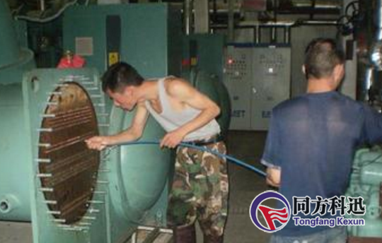 預(yù)膜:排放冷凍水,同方科迅會(huì)將清洗出的銹渣、污泥排出冷凍系統(tǒng)之處。拆開(kāi)冷凍系統(tǒng)Y型過(guò)濾網(wǎng),清除濾網(wǎng)雜物,再封好過(guò)濾器,向系統(tǒng)注水排氣至冷凍水滿。